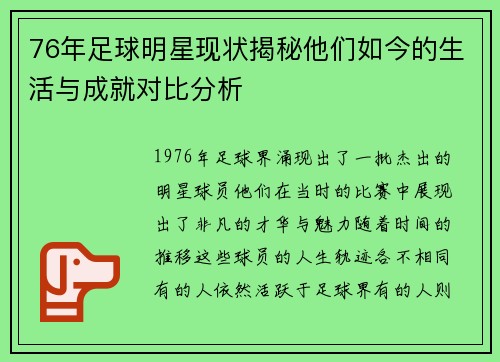 在当今社会,足球明星与娱乐圈明星作为两个备受瞩目的职业群体,吸引了大量的关注与讨论。两者在收入上存在显著差异,这不仅受到个人才华、市场需求和品牌价值等多种因素的影响,还反映出不同领域的经济生态和文化现象。本文将从四个方面深入探讨足球明星与娱乐圈明星的收入对比,包括收入来源、市场规模、品牌效应以及职业生涯长度。通过这些分析,我们可以更全面地理解这两个行业之间的差异,并揭示其背后的真实原因。 1、收...